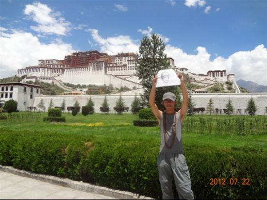 幅自画像被带至布达拉宫前合影